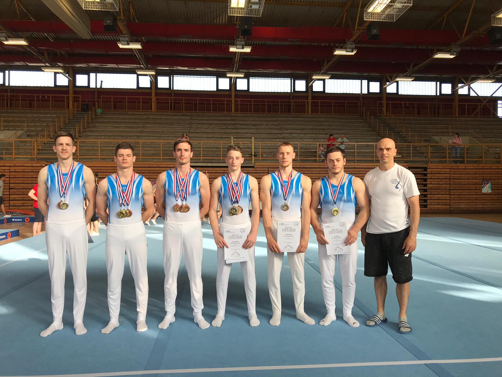 Kod seniora Jakov Vlahek je postao državi prvak na ručama, a Tin Srbić na preči,dok su Kristijan Vugrinski, Filip Boroša i Matija Baron osvojili svaki po dvije medalje po spravama.